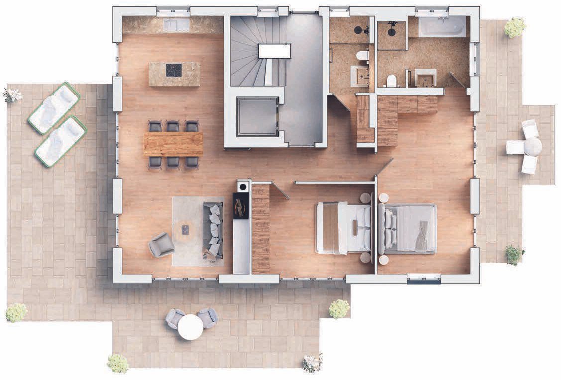 | Wellness / Gäste: | ca. 29,41 m2 | ca. 31,45 m2 |